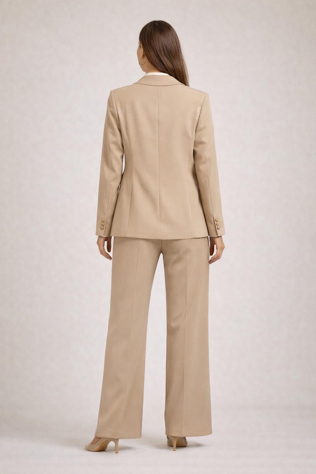 The classy ana outfit is a polished,a warm beige tone. It features: